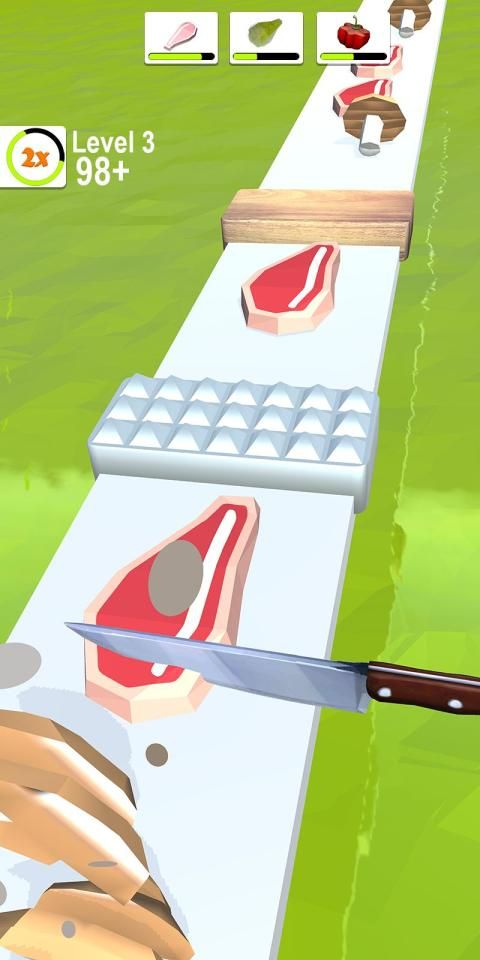 Cut all vegetables and fruit and become a true master chef. Very satisfy!