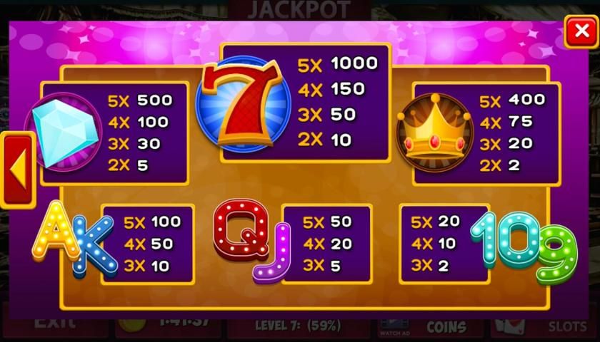 यह मुफ्त स्लॉट खेल एप्लिकेशन वयस्क दर्शकों के लिए करना है और असली पैसे जुआ या असली पैसे या पुरस्कार जीतने के लिए किसी भी अवसर प्रदान नहीं करता है। इस मुफ्त स्लॉट खेल में सफलता असली पैसे जुआ में भविष्य की सफलता के संकेत नहीं करता है।