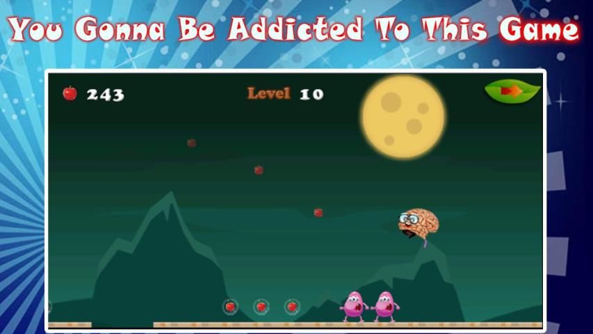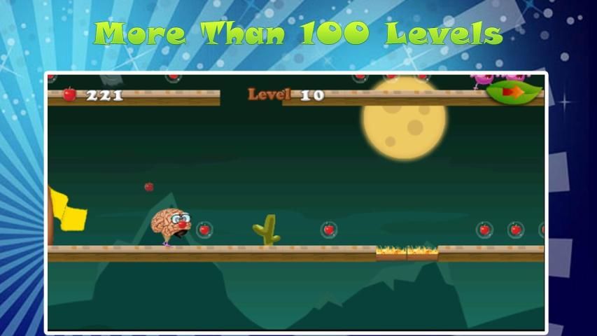 खेल का हीरो पक्षी का एक पैर के साथ एक स्मार्ट दिमाग है, मन भागो लीजिए सेब, गड्ढों कूद और जाल और राक्षसों से बचें।