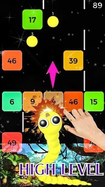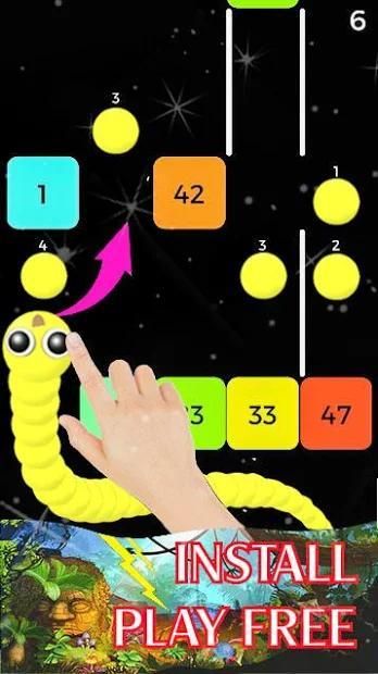 Swipe your finger to guide the snake king break blocks.