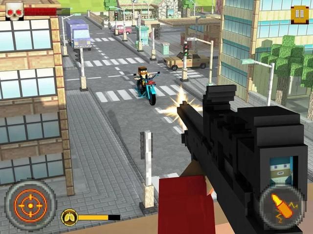 बाईकर्स लोगों को परेशान गोली मार। भागने अपराधियों को मारने। नीचे अपराधियों डालने में पुलिस में मदद करें। फिरौती का संग्रह अपहर्ताओं गोली मार। भ्रष्ट महिला मानव यातायातकर्ता मार।