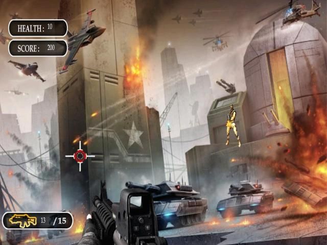 आप संयुक्त राज्य अमेरिका सेना के संभ्रांत निशानची हैं और अपनी राइफल अप battle.Pick में विसर्जित कर देंगे वह आवाज बहुत अच्छी है, दृष्टि और आग में अपने लक्ष्य रखा गया है terrorists.This शूटर खेल के खिलाफ लड़ाई! अपने ट्रिगर उंगली से जल्दी और गोली मार या गोली मार दी! Missions.Enjoy चिकनी और अनुकूलन स्पर्श नियंत्रण हासिल करने के लिए बुरे लोगों को मारने और क्रॉस-प्लेटफॉर्म पहले व्यक्ति शूटर खेलने