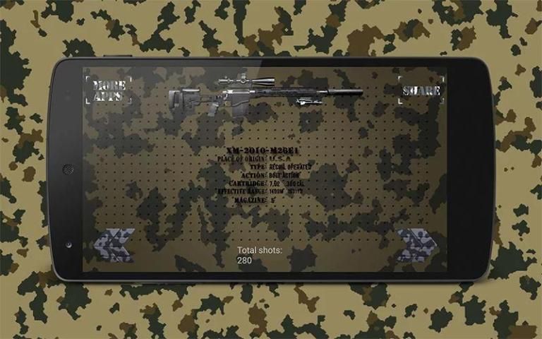 एक स्निपर शूटिंग सिम्युलेटर के लिए खोज रहे हैं? यहाँ उनके विस्तार, जानकारी, ध्वनि और गोलियों के साथ दुनिया में सबसे शक्तिशाली बंदूकधारियों का संग्रह है! आप आधुनिक स्निपर राइफल के हित में हैं और आप भी उनके पास जो क्षमता, प्रभावी सीमा, प्रकार, पत्रिका आकार जानना चाहता था कि हो सकता है, इस app सिर्फ तुम्हारे लिए है!