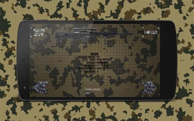 इस एप्लिकेशन में आप अलग अलग कैलिबर, ध्वनि, शक्ति के साथ लोकप्रिय सैन्य और विशेष बलों बंदूकधारियों के एक बहुत सारे मिल सकते हैं!