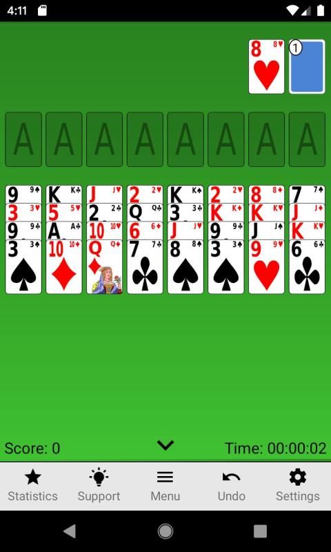कार्ड के आठ कॉलम संभव सबसे कम चालों के साथ उन्हें साफ़ करने के आपके प्रयासों का इंतजार करते हैं। जब तक आप सहज न हों, तब तक एक ही सूट के साथ खेलना शुरू करें, और फिर देखें कि एक गेम में दो या सभी चार सूटों का उपयोग करते समय आप कैसे किराया लेते हैं।