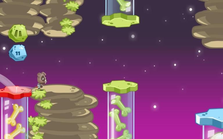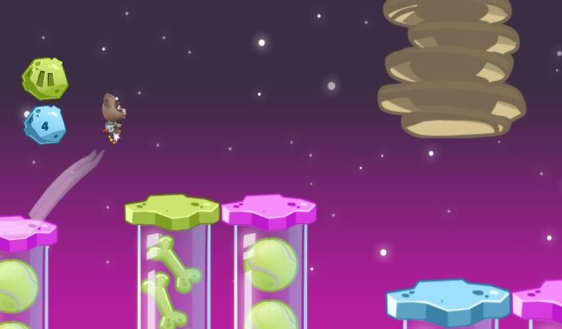अपने अंतरिक्ष दौड़ शुरू है और सबसे अच्छा स्कोर जीत! "कुत्ते के खेल - कूद साहसिक" बेहतरीन पशु साहसिक और "बच्चों के लिए आर्केड खेल 'है!