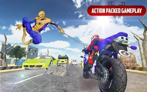 spider stunt rider a spider ride on highway road to survival brings the most thrilling game play of bike riding on highway with extremely powerful superhero amazing spider ride and spider stunts , shooting on the opponent riders , spider punches and kicks. spider rider a super hero spider stunt rider game simulation, spider rider is spider hero and riding the stunt rider on highway. spider rider super hero ride powerful bike and run on the thrilling highway. spider stunt rider ride the vs against opponent spider riders. play spider stunt rider vs super hero black spider and win the race game.