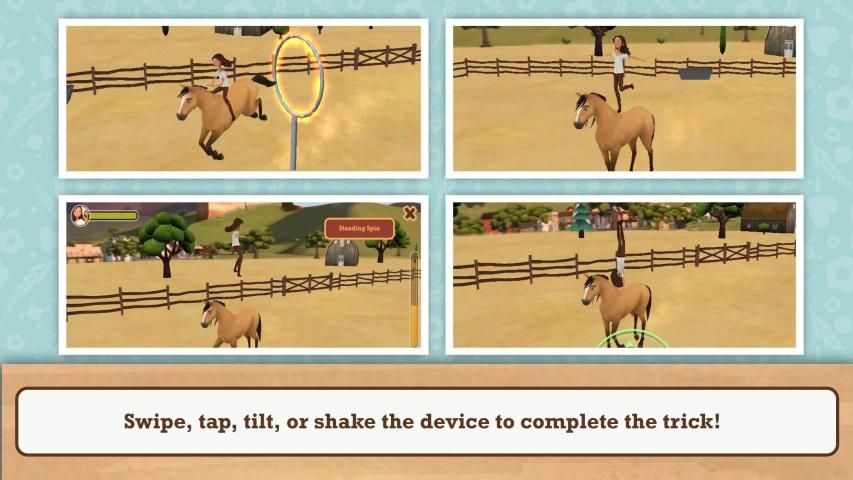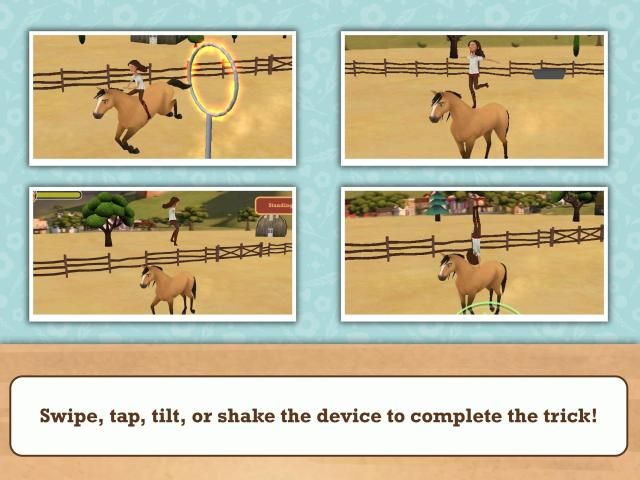 UNLOCK up to 11 different tricks from DreamWorks Spirit Riding Free to practice and perform: No Hands, Stand Up, Backflip even Jump through the Flaming Hoop