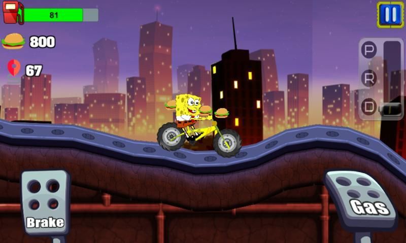 when all bikini bottom residents are busy ruled by the evil plankton the sponge gets the mission from Mr. Krabby to look for magic shells to defeat the evil plankton, then Mr. Krabby gives a super bike from Kraby that can go very fast up and down and climb the mountain.
