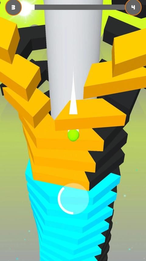 Your ball should smash colorful platforms without hitting black one through its descent. If you hit black one, it's all game over! Your ball crashes in to pieces and you have to start again.Speedup so that you will get boost-up and at that time you can blast through platforms.Stop and wait for your next chance to roll and jump when you are on black platforms.
