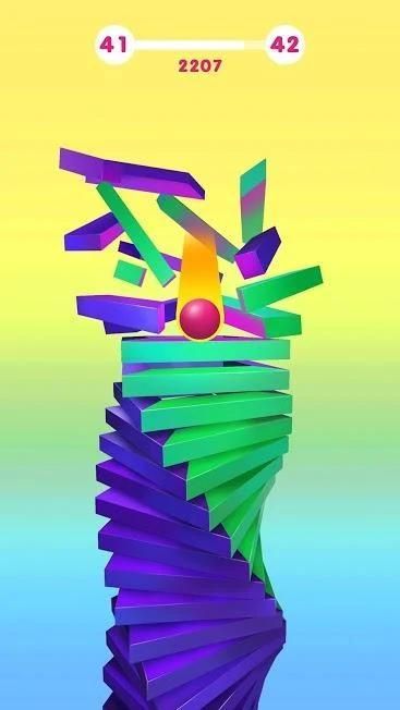 Rotate the spiral pipe to help the ball avoid obstacles and hit the spiral block of the same color.
