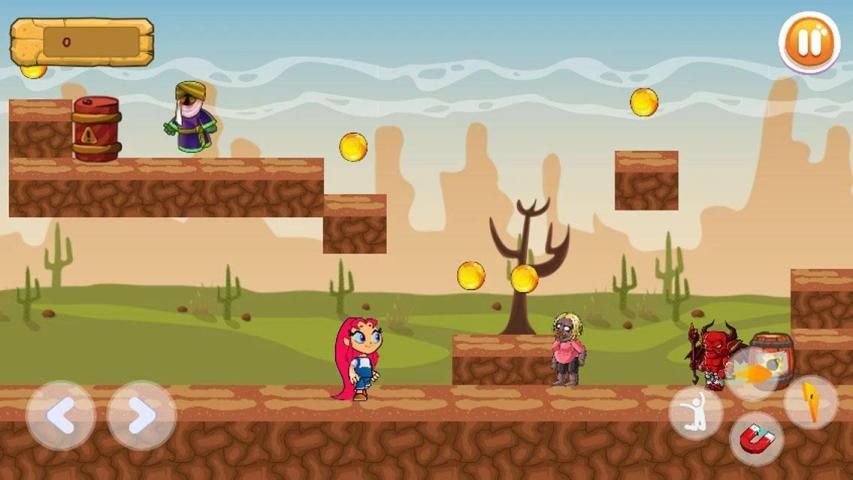 Help starfir avoid & get beast gifts bonuses chain challenge without any defeat, avaid ennemies fighter and zombiesfrom titan world monsters, jump, run lift many evil enemies and make sure protect your hero starfire from all zombie.