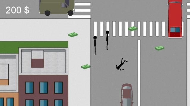 Avoid getting beat up by police stickmen or being hit by cars on the street.