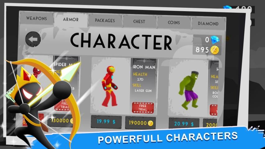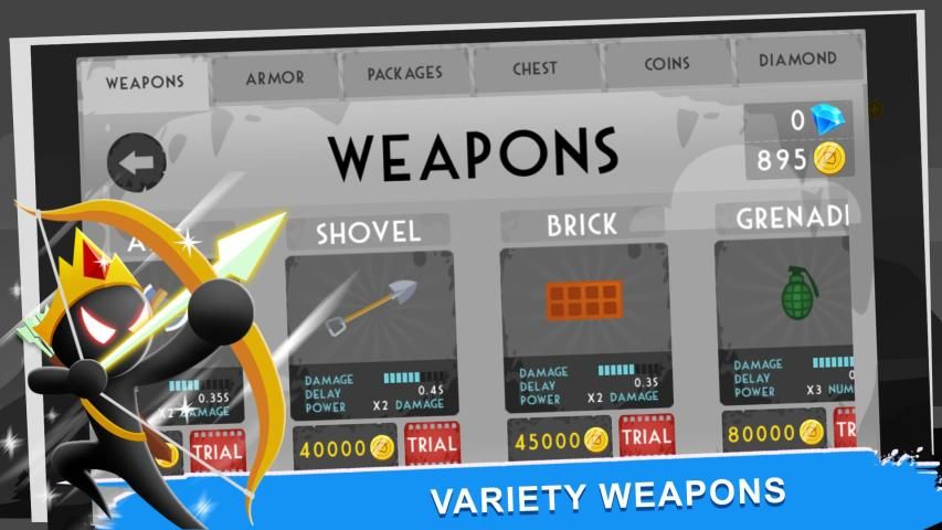 Stickman Archer: Mr Bow Fight is an intense physic-based archery game, have a dynamic roster of hero with many unique abilities. The game also has a wide varieties of weapon beside your trustworthy bow, such as Tennis Ball, Brick, Shovel and many more!