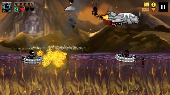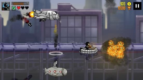 shoot, dive, jump, etc....., causing all stickman invaders to dismounting while also destroying fighter jets,
