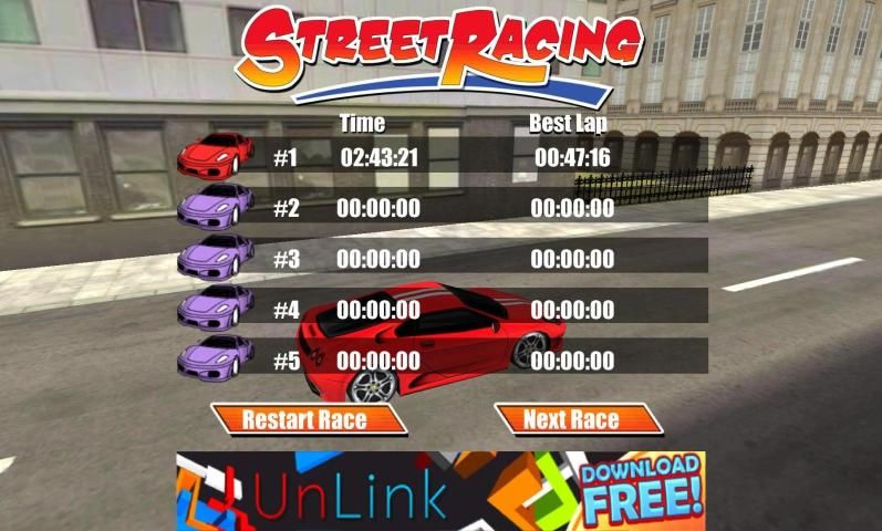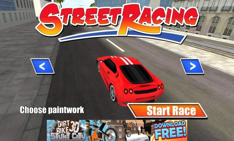In 3D Street Racing you race through the sunlit urban streets. Step on the accelerator pedal and show everyone that you are the fastest driver around. So Grab your Helmet, put on the seat belt and start the engines!