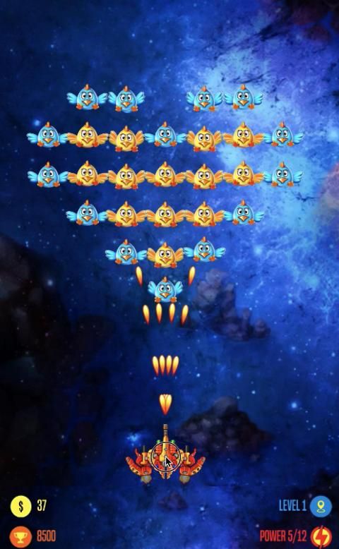 Save the solar system from invading chickens. When you thought it was safe to eat chicken again, the chickens have returned with an organized invasion to take over the entire solar system! Journey to each planet and fight your way through to save the world! Advance through waves of invading chickens, avoiding falling eggs and collecting power-ups to boost your spaceship's firepower. You can buy many items then shoot chickens to protect your galaxy planet.