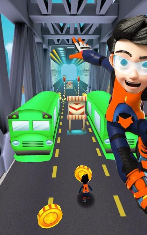 Subway Train Rush Runner is our best running game for android to date. Avoid Obstacles and Use your finger to Jump or slide and move side to side, Run through the Game avoiding buses, just don't hit a bus or you're done for, run through the city, the park and under and over the subway.
