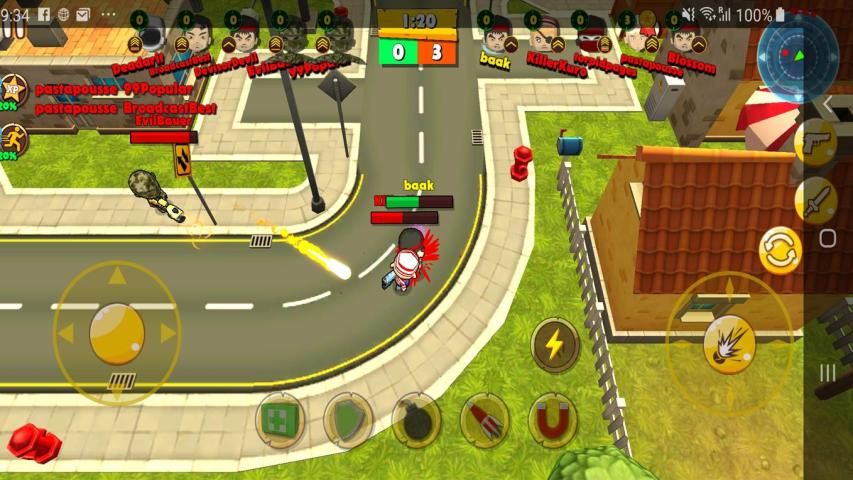 Beside your skills, have many weapons, item to you use. Guns, secondary weapon, bomb, rocket...many and many. You can pick up your favorites and starting defeat the other players!