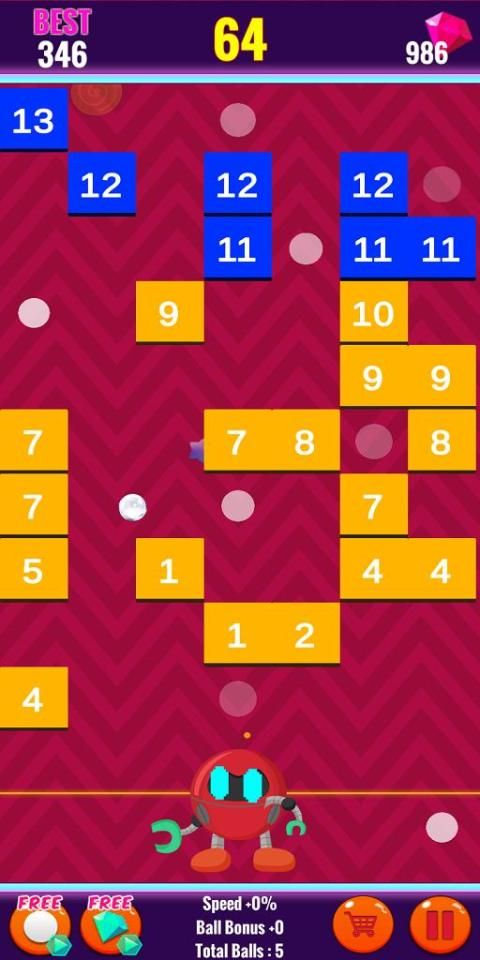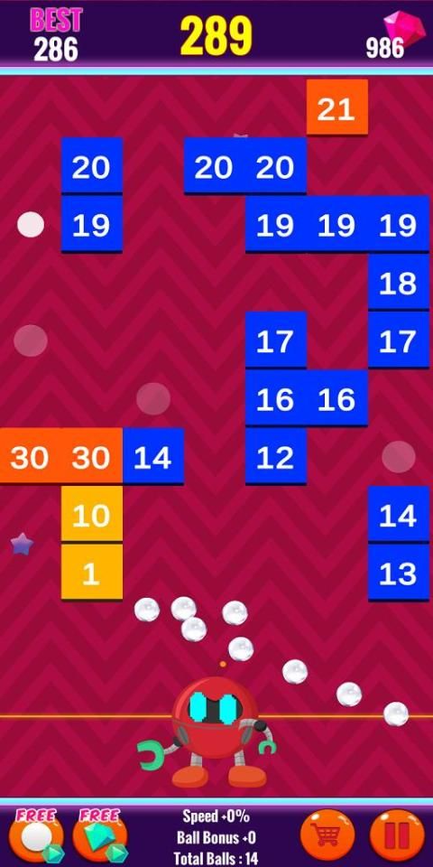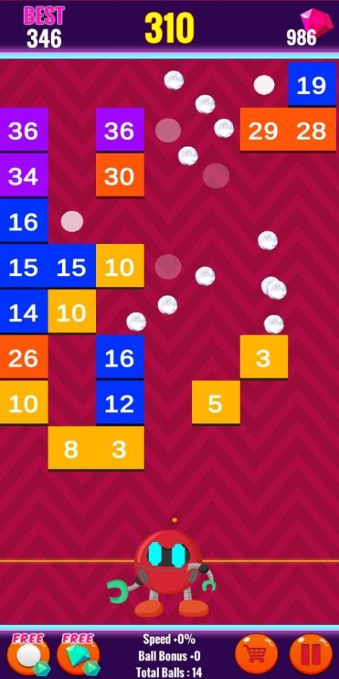 3. जब गेंदें ईंटों से टकराती हैं, तो उनका स्थायित्व काफी कम हो जाता है, और जब स्थायित्व 0 तक कम हो जाता है, तो ईंट टूट जाती है।