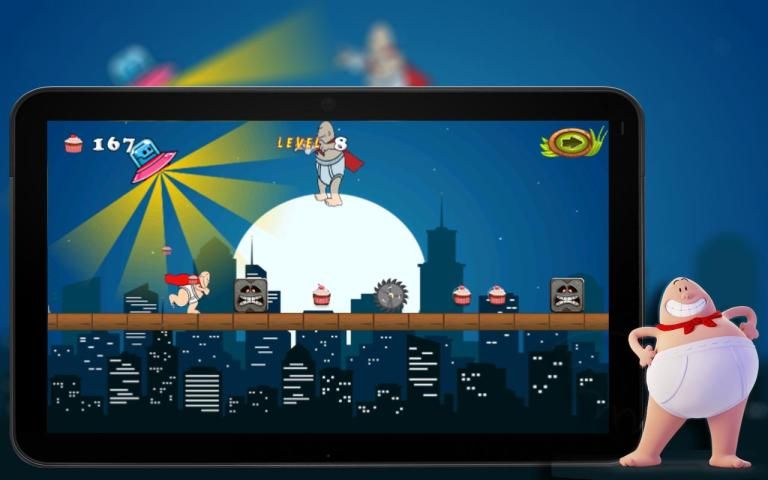 Captain Underpants - New Adventure is a 2D adventure game with different characters and levels. You should colect coins and diamonds to move next levels.