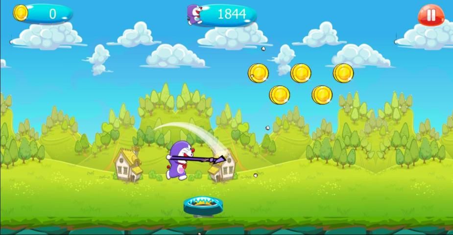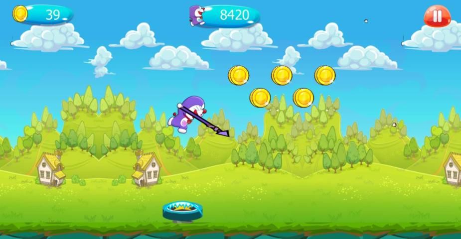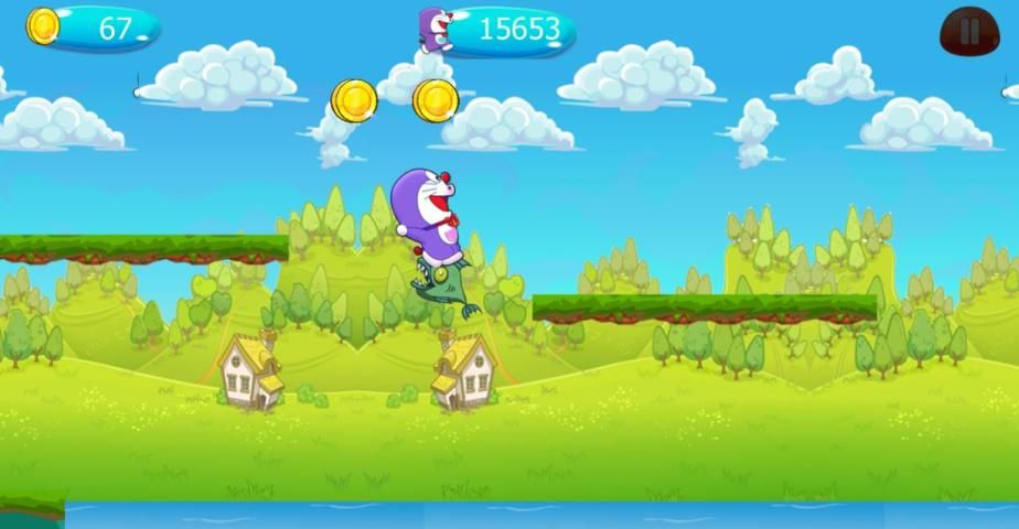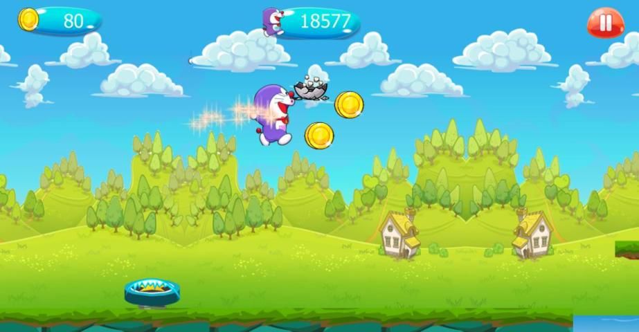 Doremon खेल बिल्ली लड़का रन और उन पर कूद द्वारा दुश्मनों को हराने के लिए मदद, दुश्मनों को छू नहीं खेल हार पाने के लिए नहीं करने के लिए प्रयास