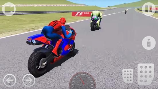 के सुपर हीरो मोटो बाइक राजमार्ग रेसर 3 डी रेसिंग खेल का आनंद लें।