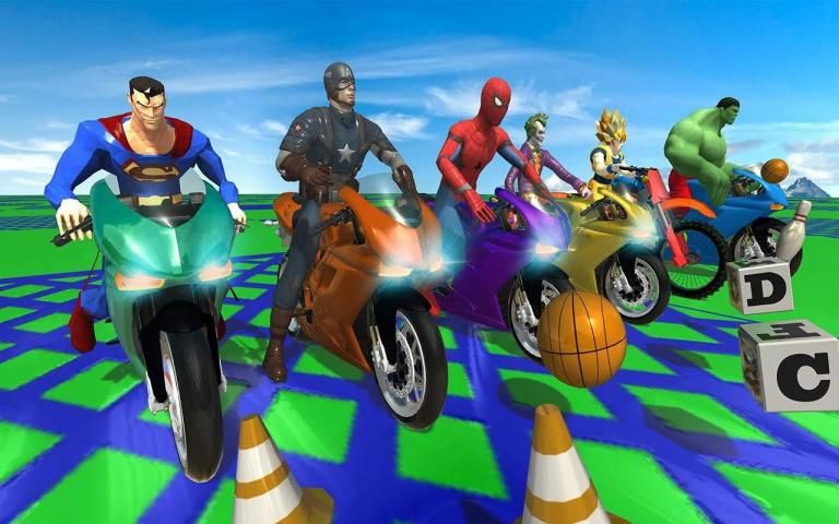 यह खेल सुपरहीरो सभी सुपरहीरो खाल रेसिंग Funland में अपने मनोरंजन के लिए तैयार कर रहे हैं की अवधारणा पर बनाया गया है। सुपरमैन, जोकर, फ्लैश, बैटमैन, डेडपूल, आयरनमैन और मकड़ी नायक की तरह सभी सुपरहीरो वहाँ और बीच हवा में अविश्वसनीय और दिल को छू स्टंट करने के लिए तैयार हैं। दौड़ के लिए नायक और बाइक चुनें और नर्सरी कविताओं और बच्चों गीत का आनंद लें। आपका चरम स्टंट और हवा में flips आप अतिरिक्त अंक के लिए सभी स्तरों पूरा अन्य सुपरहीरो अनलॉक करने के लिए दे देंगे और स्तरों अपने परिवार और दोस्तों के साथ प्रतिस्पर्धा और सभी प्रतिद्वंद्वियों जो पहली रेस को पूरा करने की कोशिश वाला हार।