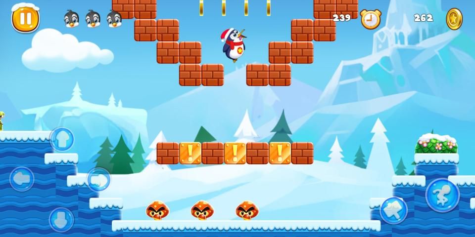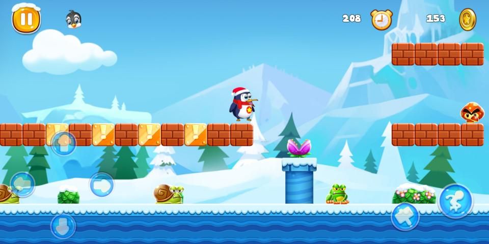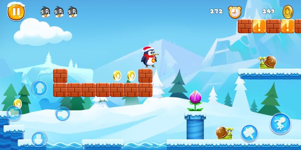 Use on-screen virtual controller to control Super Penguin Adventure Run World Snow. You can run, jump and fight with lots of enemies.