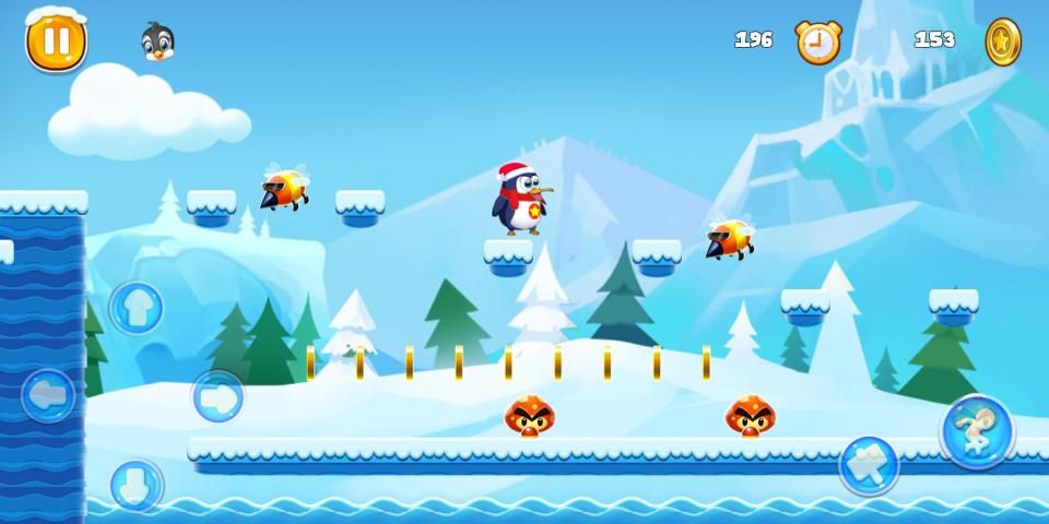 सुपर पेंगुइन एडवेंचर रन वर्ल्ड स्नो को नियंत्रित करने के लिए ऑन-स्क्रीन वर्चुअल कंट्रोलर का उपयोग करें। आप बहुत सारे दुश्मनों के साथ दौड़ सकते हैं, कूद सकते हैं और लड़ सकते हैं।