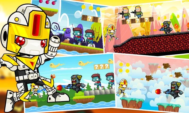 Control robot soldier to run, jump and pounce heavy on monsters to beat them. Start your adventure, run across different stages as you smash through those tricky maniac monsters. Filled with unexpected difficult obstacles, hurdles, struggle to get to the final destination to complete the mission. This is of a type of best mario world, robot game running for life.