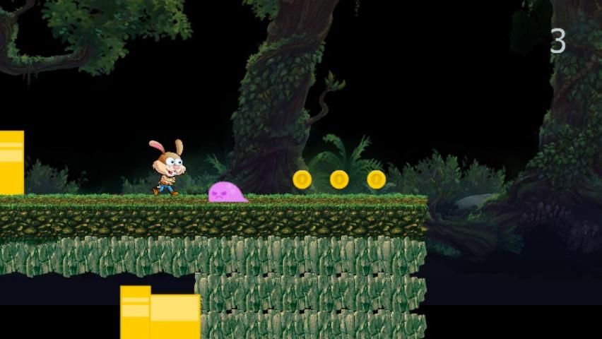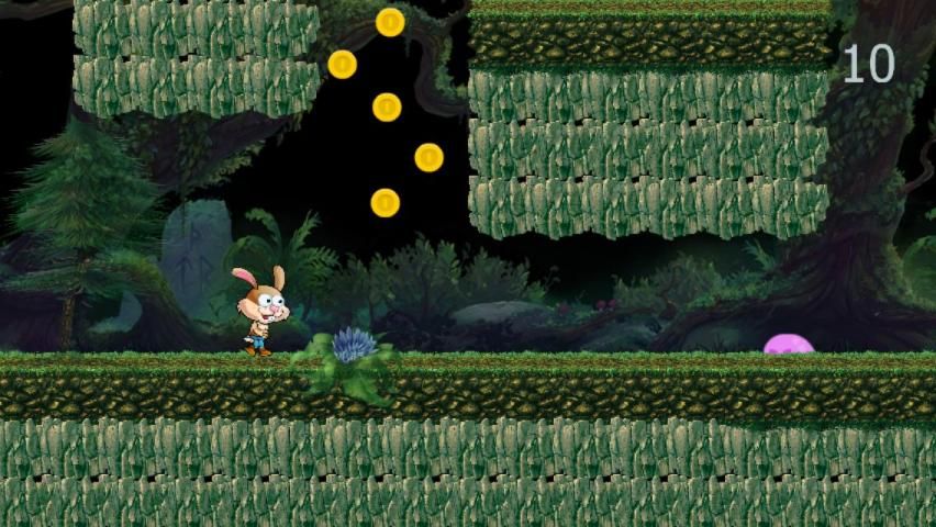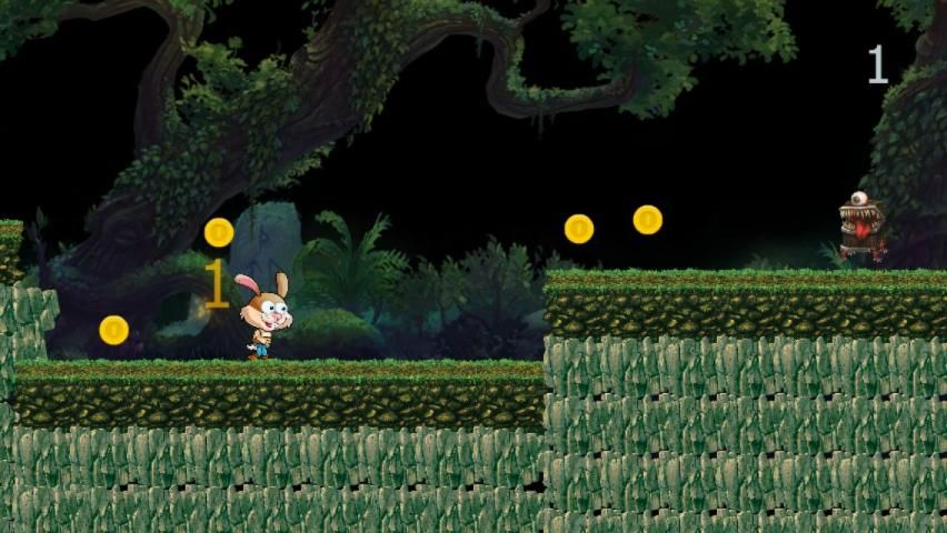 is basically run game where little rabbit runs and flings to save himself while crossing various hurdles on the way. The game uses an extremely classic animated image of