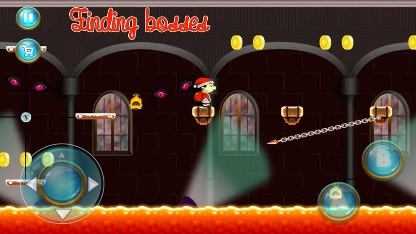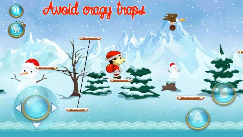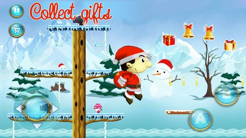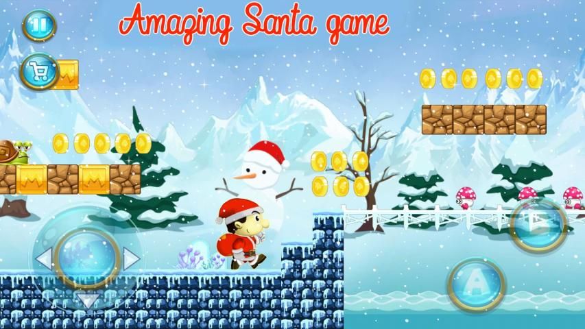 हमारे सांता सभी बाधाओं को सभी उपहार, सिक्के एकत्र कूद और सभी स्तरों में खत्म करने के लिए छोटा सा आदमी से बचने के लिए मदद करें। एक आभासी गेमपैड है कि उसे नियंत्रित करने के लिए एक शांत नियंत्रक का प्रयोग करें। क्रिसमस बच्चों के लिए सभी उपहार ले लीजिए। ऐसे मशरूम या बर्फ गेंदों के रूप में जादुई शक्ति आइटम खरीदने के लिए संभव के रूप में कई सिक्के ले लीजिए।