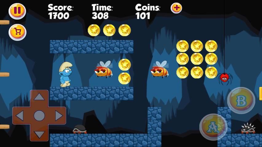 _ सही पर Smurf चरित्र प्रेस ले जाएँ या नियंत्रण तल पर छोड़ दिया करने के लिए।