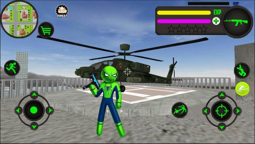 Collect rewards for Stickman rope Hero destroying your enemies and completing tasks, you can use it to buy best weapons in shop.