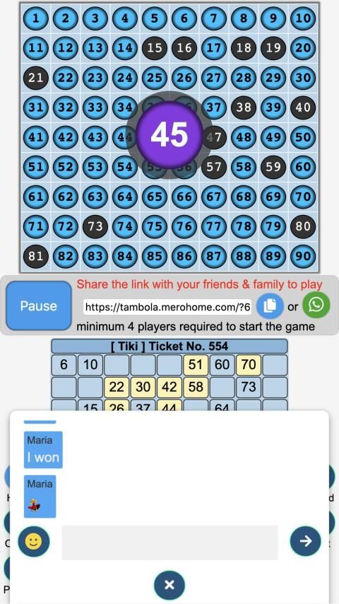 - The game can be played through the app or just by visiting https://tambola.merohome.com.