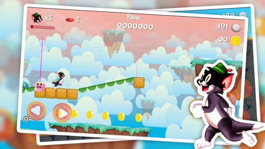 Super tom adventure jump rush is very good game easy to play Whit tom just avoid the obstacle and help Tom to collect coins
