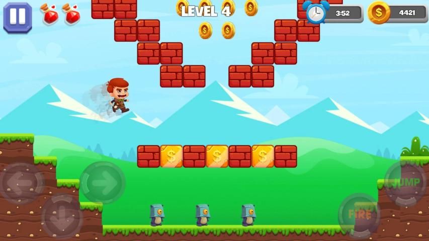 ⭐ Press the Jump button to jump and Fire to shoot;