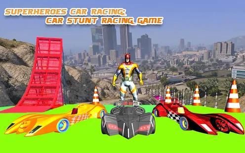 Superheroes-Car-Racing-Car-Stunts-Racing-Games features: