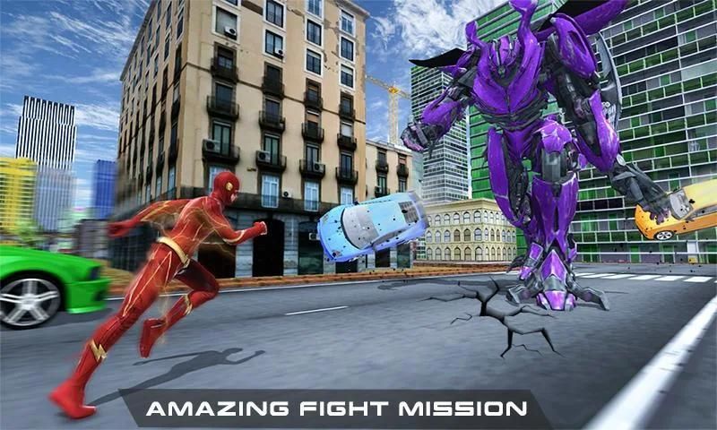 • रोबोट बदलने के खिलाफ लड़ो और एक सच्चे सुपर गति फ्लैश हीरो की तरह जीवित रहने के
