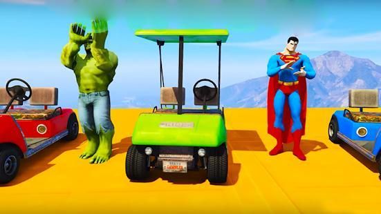 मेगा रैंप गेम्स: के सुपर हीरो कार्ट रेसिंग खेल का आनंद लें।