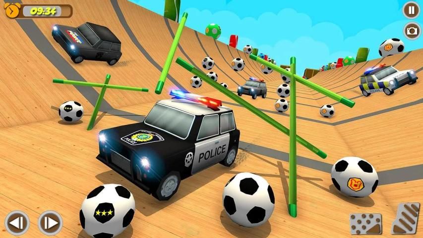 Gameplay of this super fast police car racing game is easy and fun. Choose your Super Hero and auto police car. Get in your ultra fast car, drive through racing arena, go through the check points , perform crazy racing stunts and achieve the targeted score by hitting footballs and reach the sport parking finish point in the given time to complete the level and unlock further levels and exciting top speed lightning police cars.