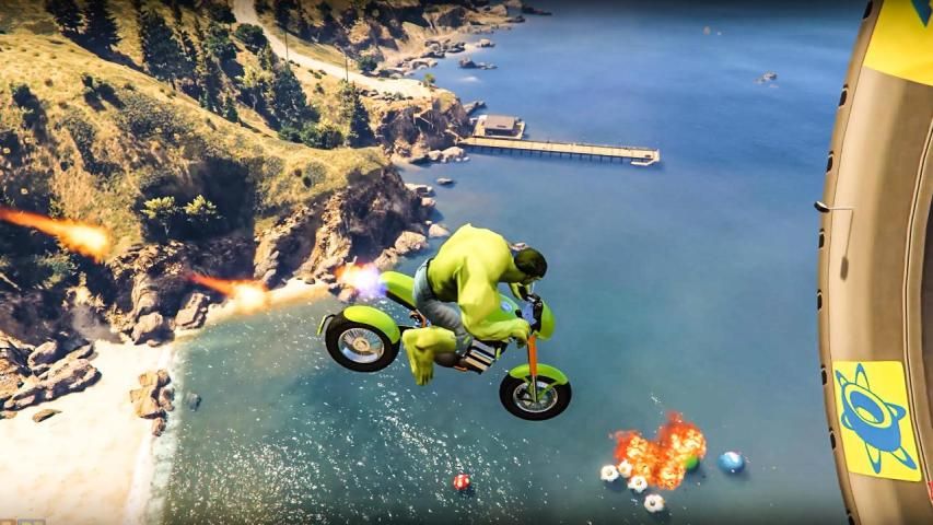 सुपर हीरो बाइक पागल स्टंट 3 डी: स्टंट रेसिंग गेम।