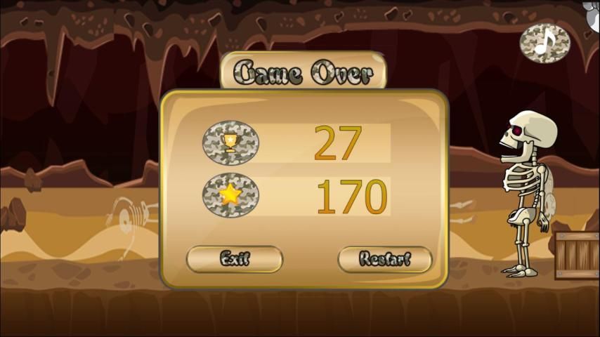 इस खेल में आप, शूटिंग कूद, और सभी बाधाओं से ऊपर चला कर गुफा से बचने के लिए किया है।