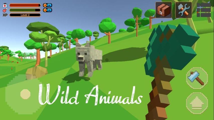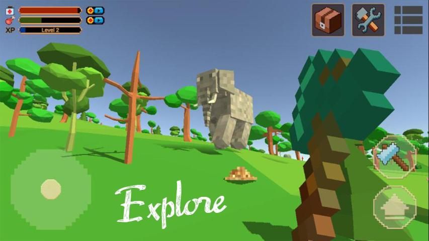 • Craft blocks to survive
