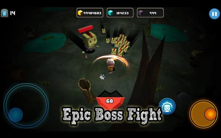1. वर्ग राक्षसों के पैक के माध्यम से अपना रास्ता गोली मारो और चमकदार क्यूब्स इकट्ठा।