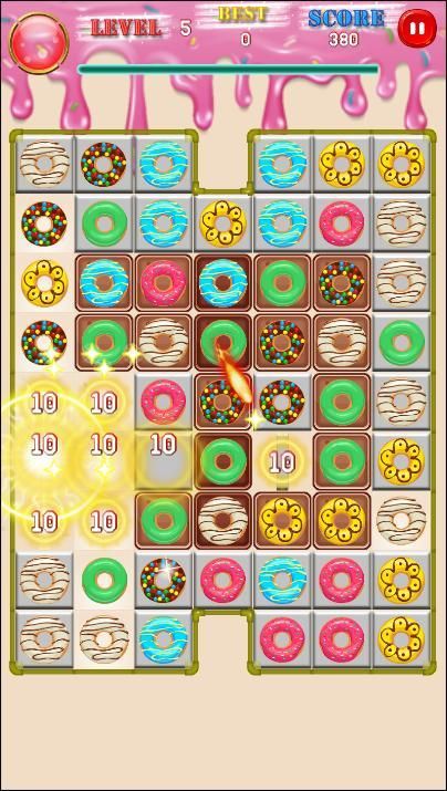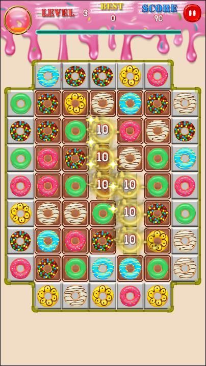विस्फोट करने के लिए 3 या अधिक डोनट्स कनेक्ट करें!