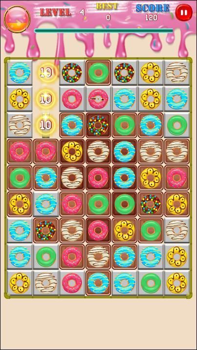 Donuts is a juicy connect 3 puzzle, welcome to the Donuts land to have a great Donuts blast party!
