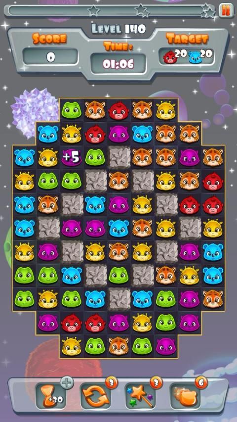 Sweet Zoo Match3 game will lead you into a world full of fun, miracles and hours of relaxing gameplay. Explore many of exciting levels filled with fun boosters, colorful cute animals - giraffes, monkeys, tigers, pumas, turtles, and koalas with magical matching and disappearance. Sparkle star path will lead your way up through the beautiful game field. Adventure for everyone who want relax and keep the mind sharp.