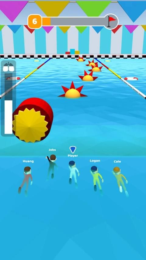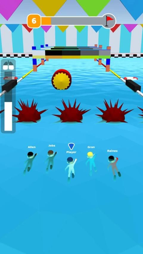 This is a swimming pool obstacle race game. Swim fast to be #1.